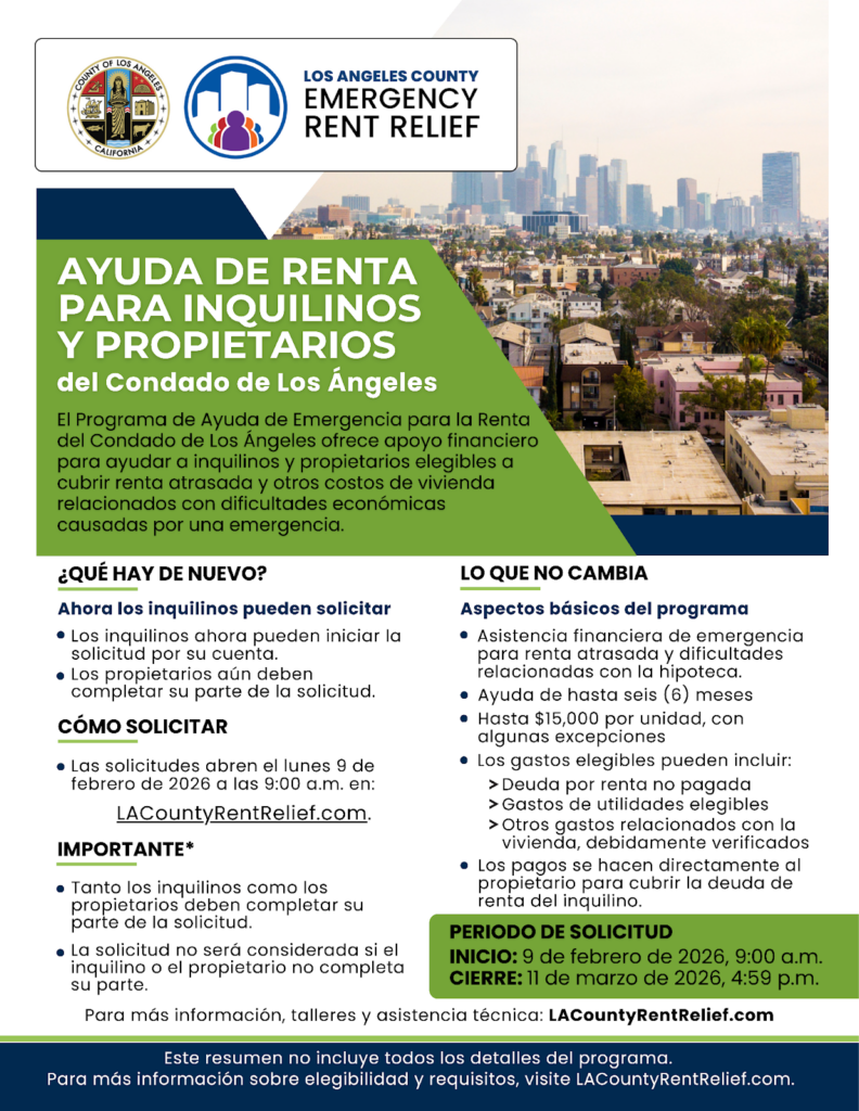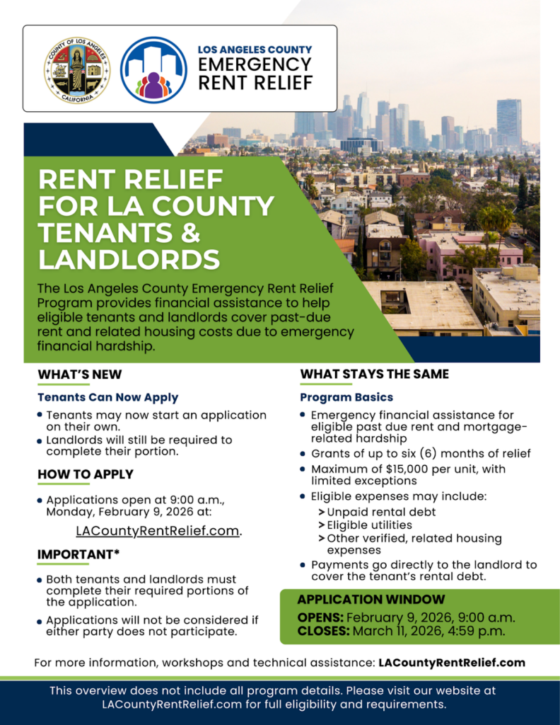 The Los Angeles County Emergency Rent Relief Program (LAERRP) has re-opened and is now taking applications from tenants.