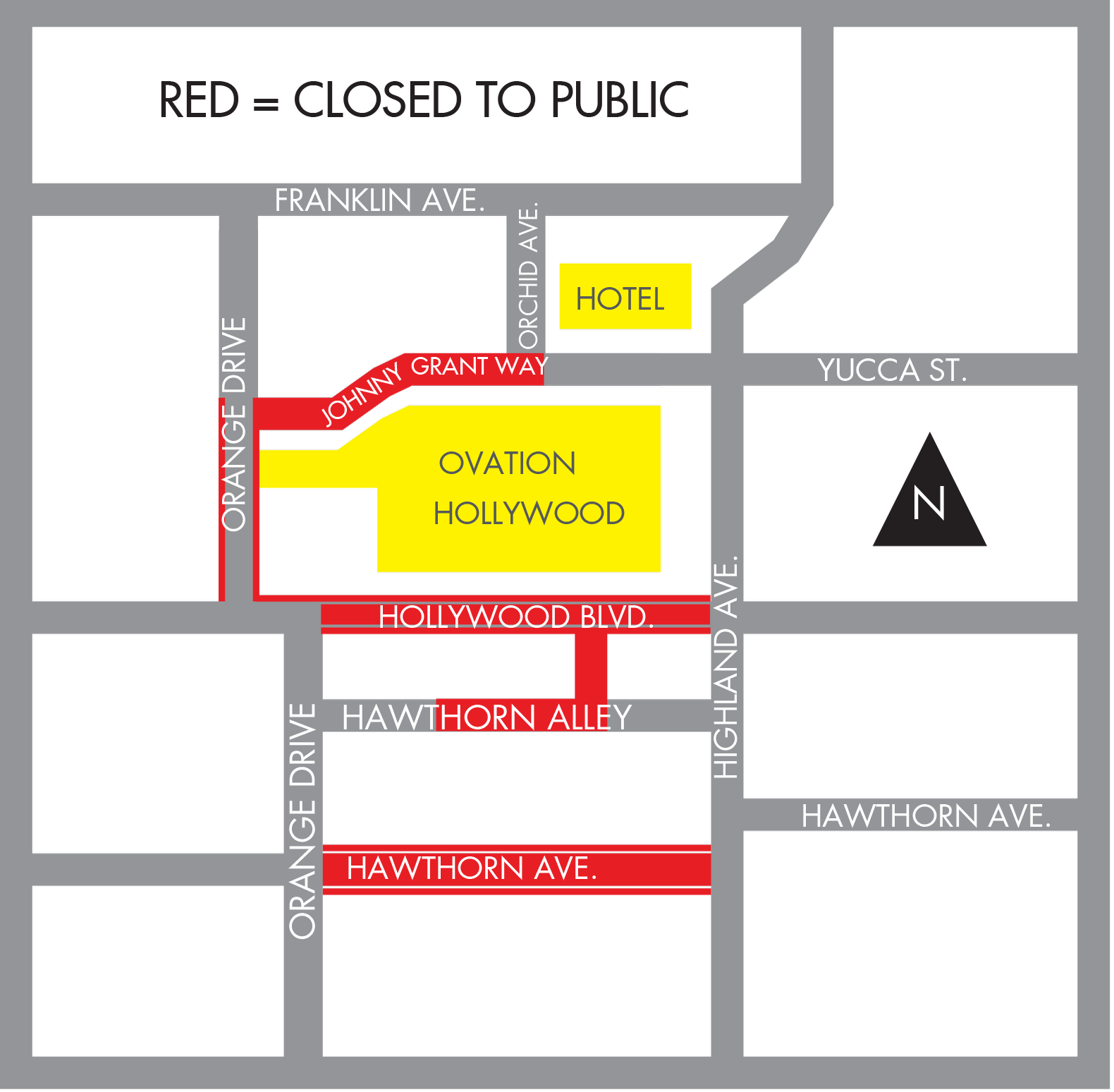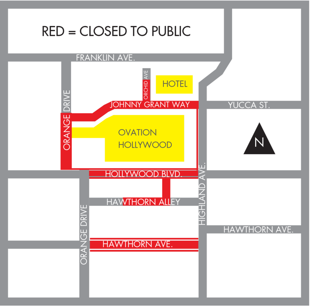 - Close Orange Drive from Johnny Grant Way to Hollywood Boulevard from 6:00 AM to 6:00 AM Monday, March 16, 2026. Except for local residents, local business access, and emergency vehicles.