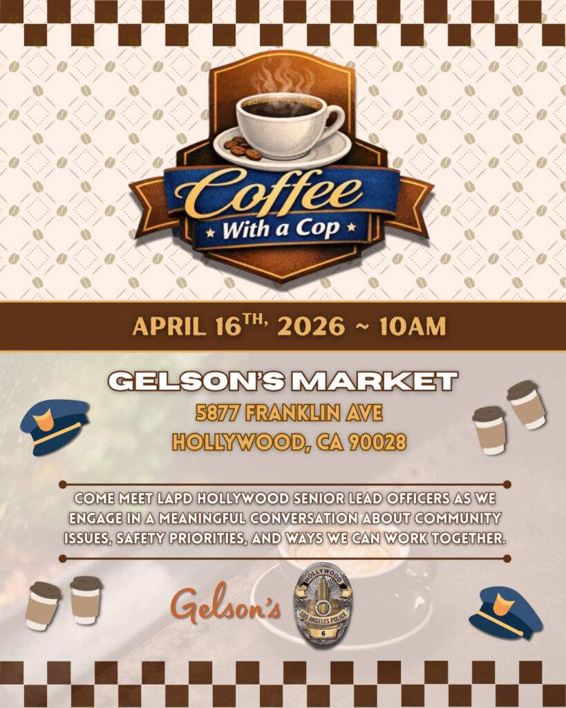 Come meet LAPD Hollywood senior lead officers as they engage in a meaningful conversation about community issues, safety priorities, and ways we can work together.